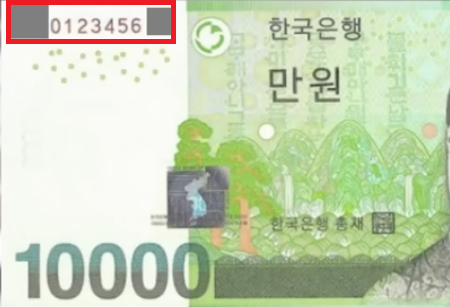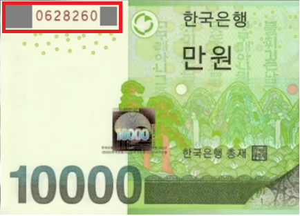 지폐 신판을 발행하면 AAA, 혹은 가가가 라는 텍스트가 일련번호 앞에 붙게 됩니다. 지금 사용되는 신권들의 가치는 낮지만 구권 디자인의 경우 가치가 매우 높은데요. 수십만원에서 높게는 수백만원까지 가치가 형성이 되어 있습니다.