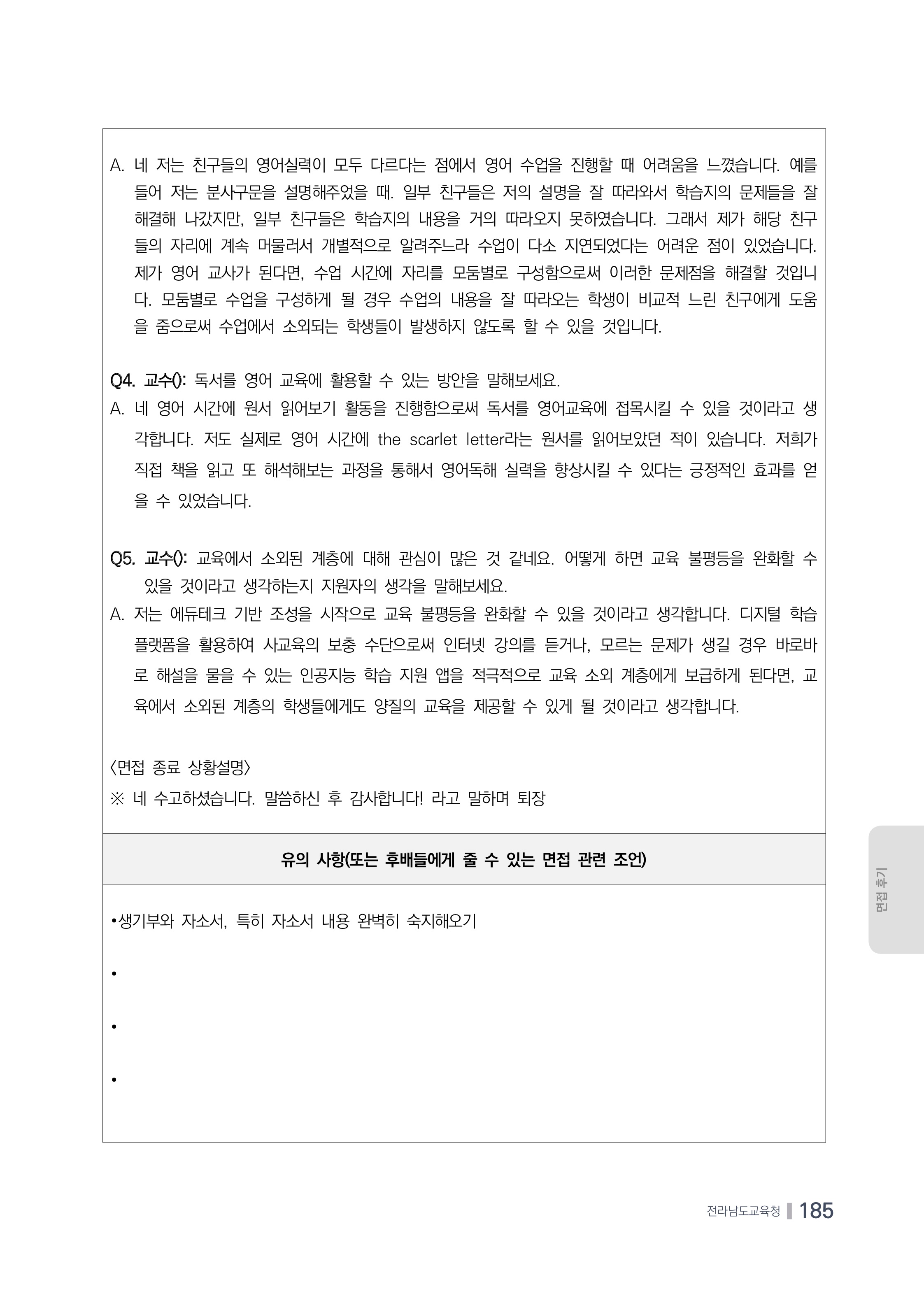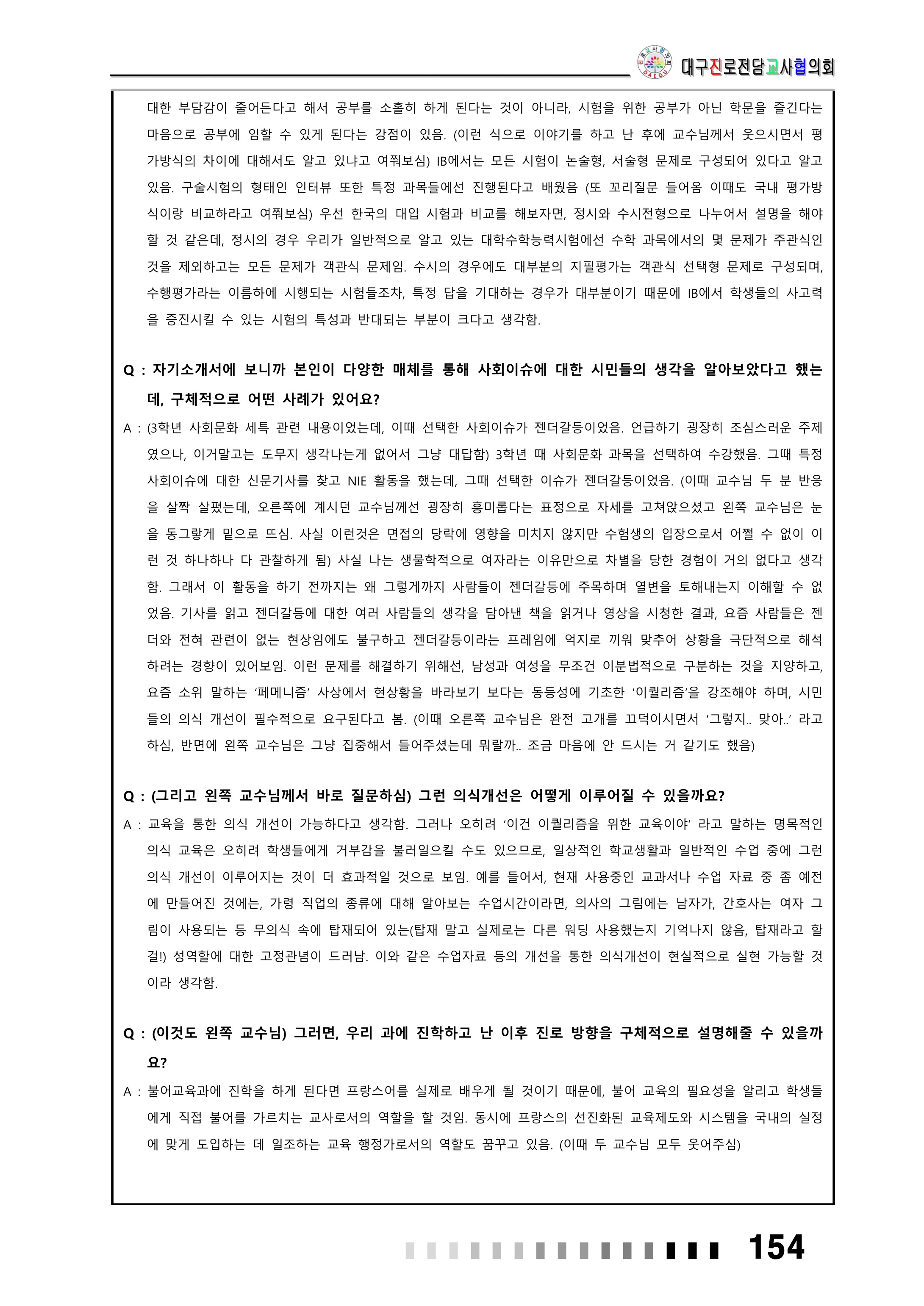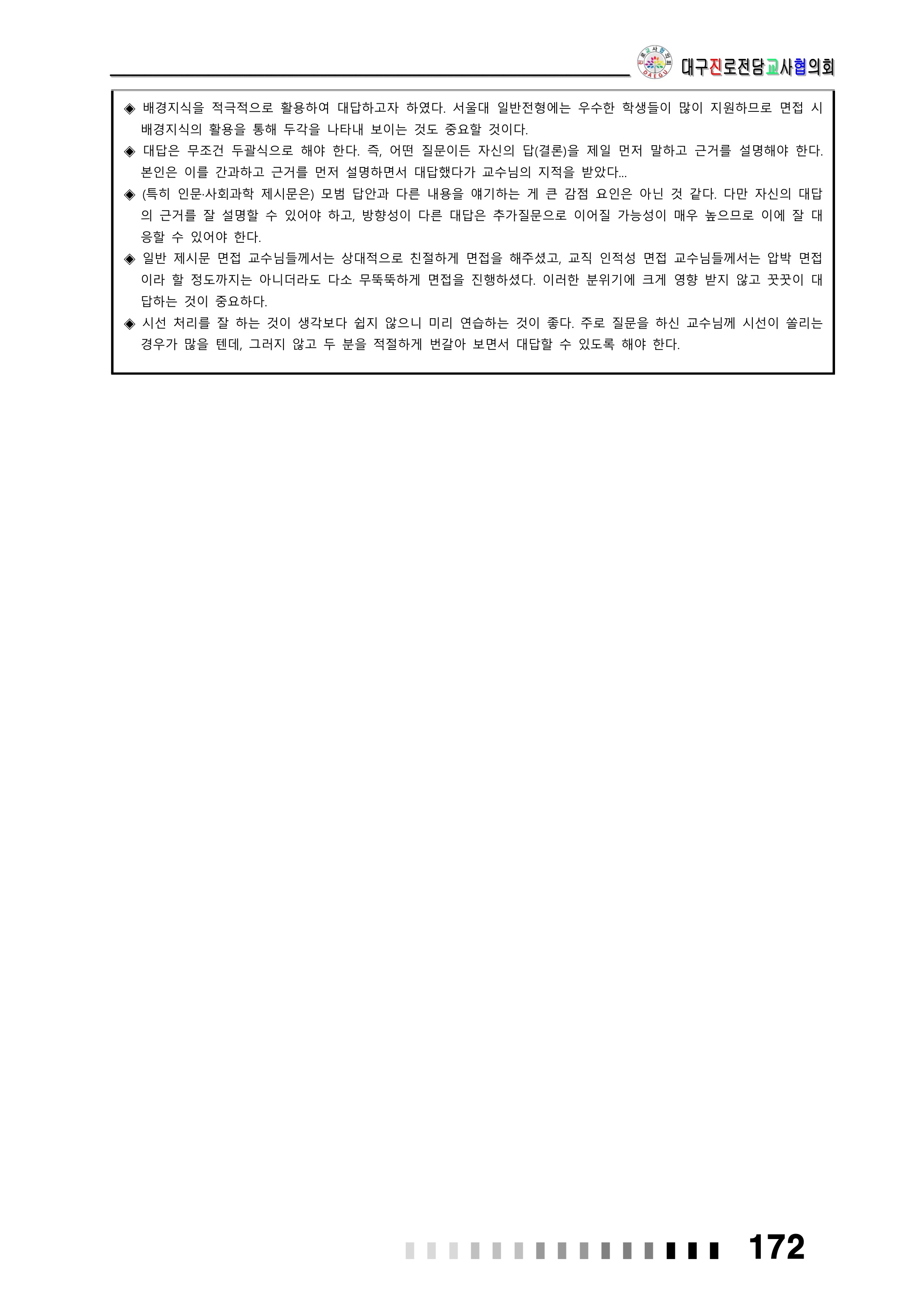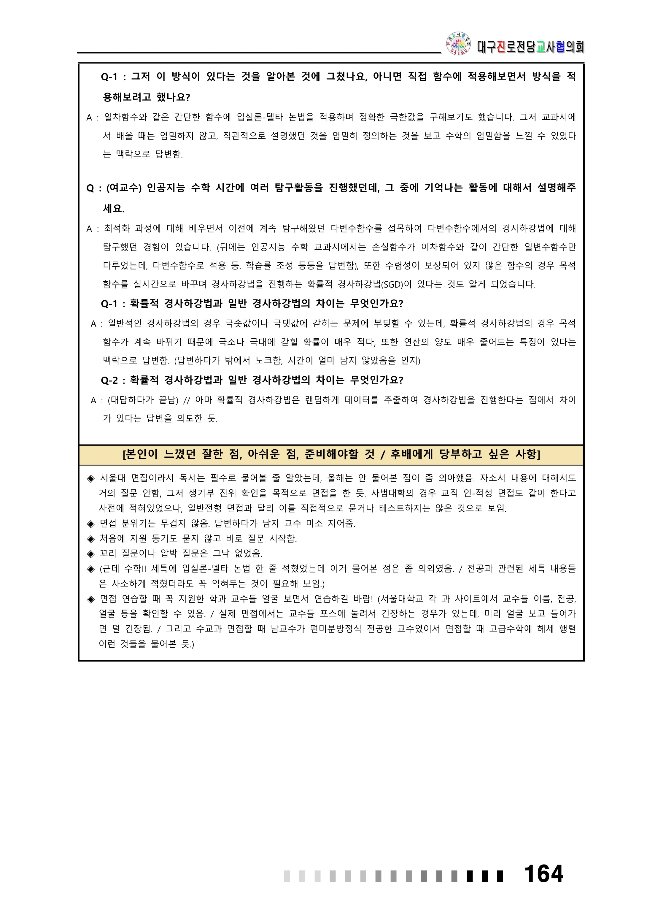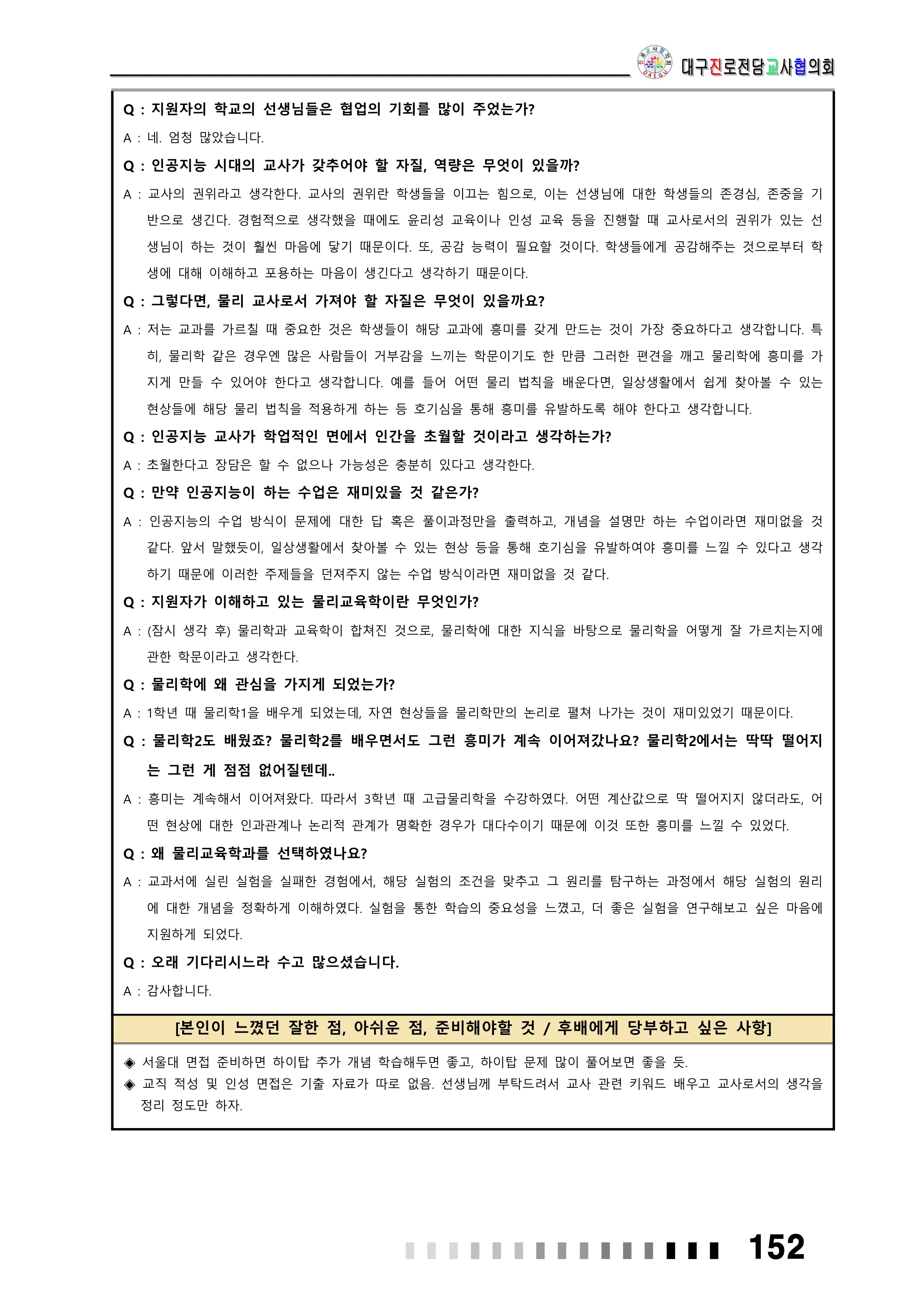 이번 포스팅에서는 서울대학교 사범대학에서 출제된 면접 질문을 총정리해보는 시간을 갖도록 하겠습니다. 해당 자료는 대구교육청 진로전담교사협의회에서 만든 자료를 PDF 파일로 첨부해 두었습니다. 관련 자료가 필요하신 분들께서는 아래 첨부파일을 확인해주시기 바랍니다.