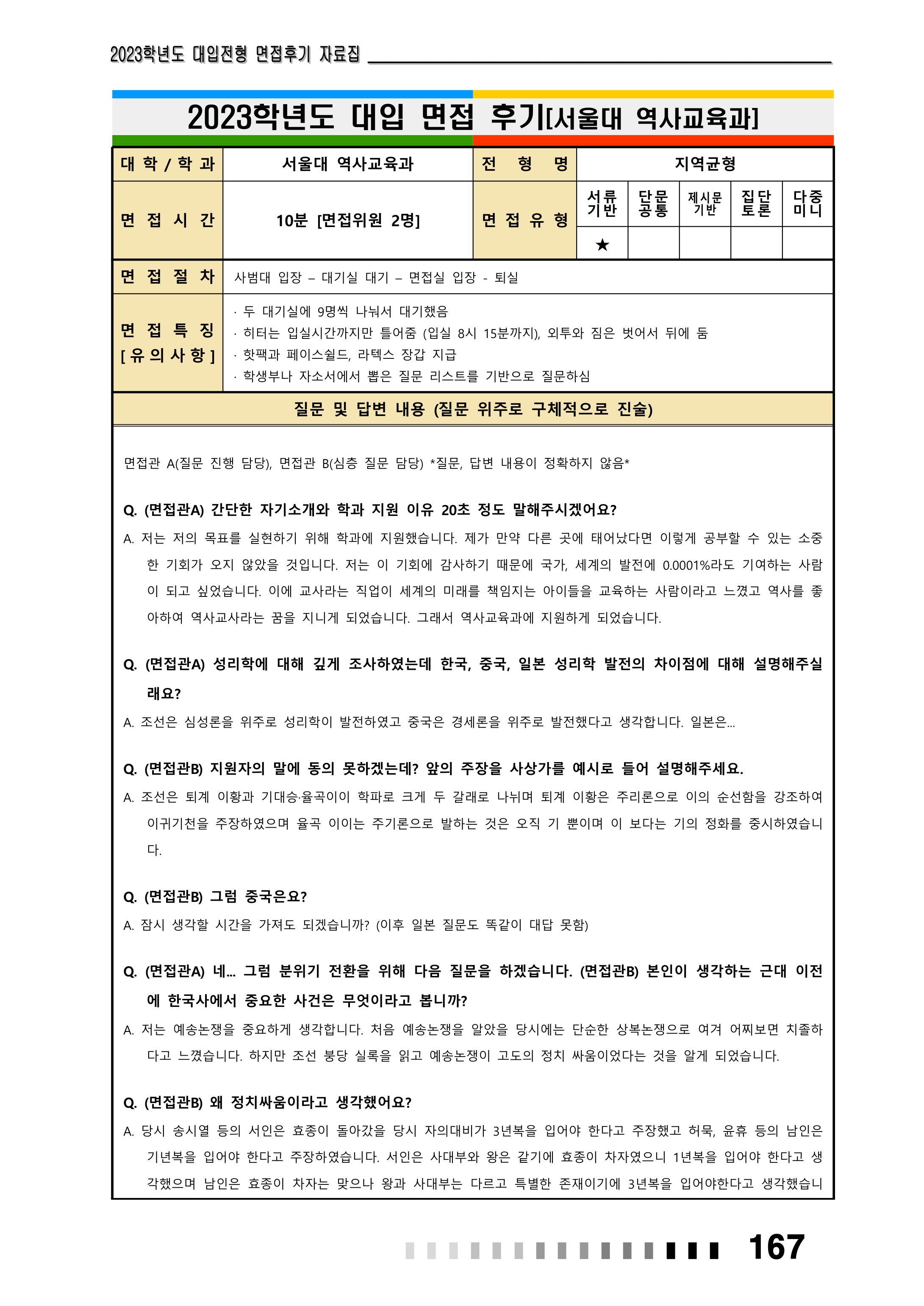 2023학년도 서울대학교 사범대학 면접 후기7 - 역사교육과