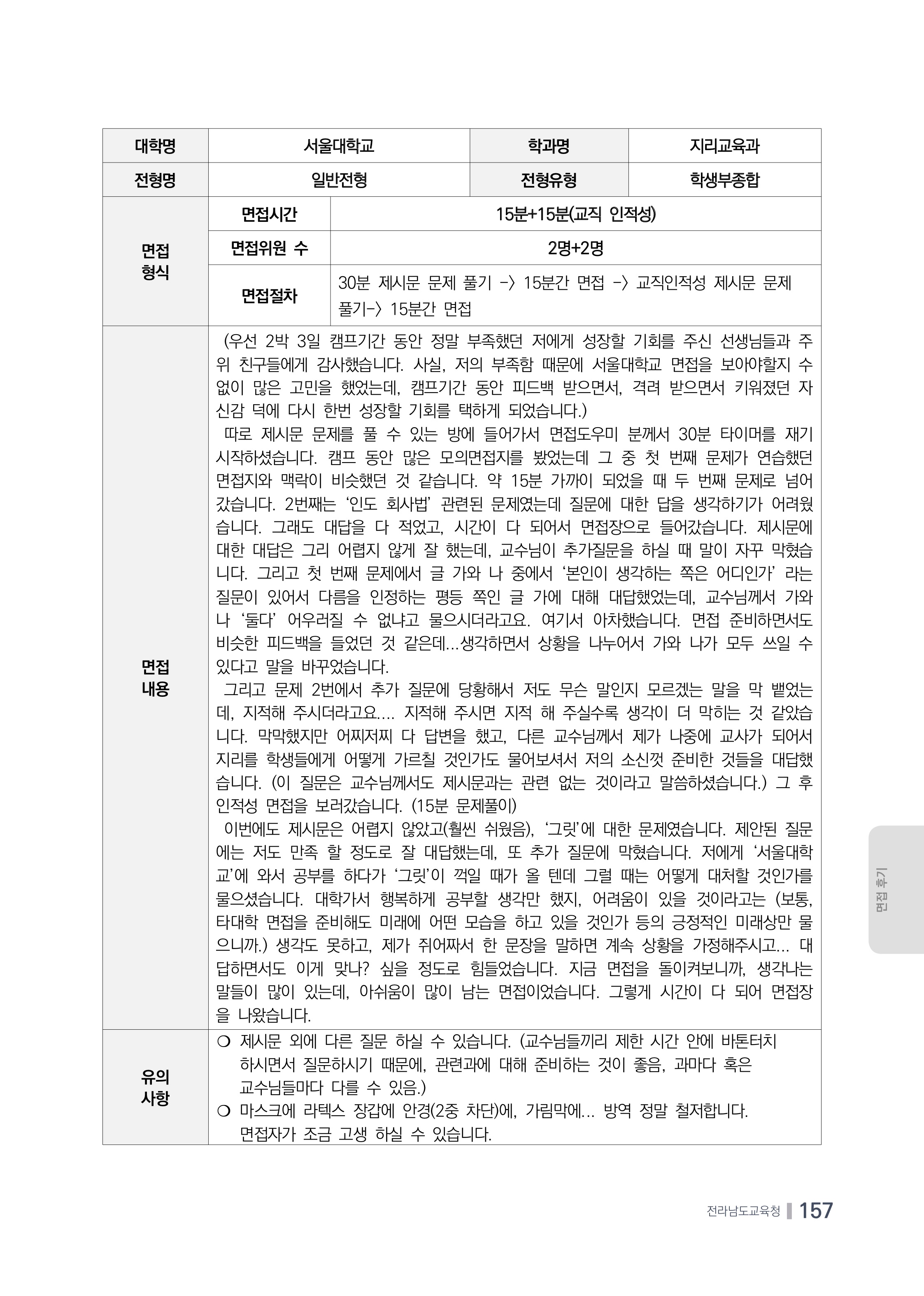 2023학년도 서울대학교 사범대학 면접 후기12 - 지리교육과