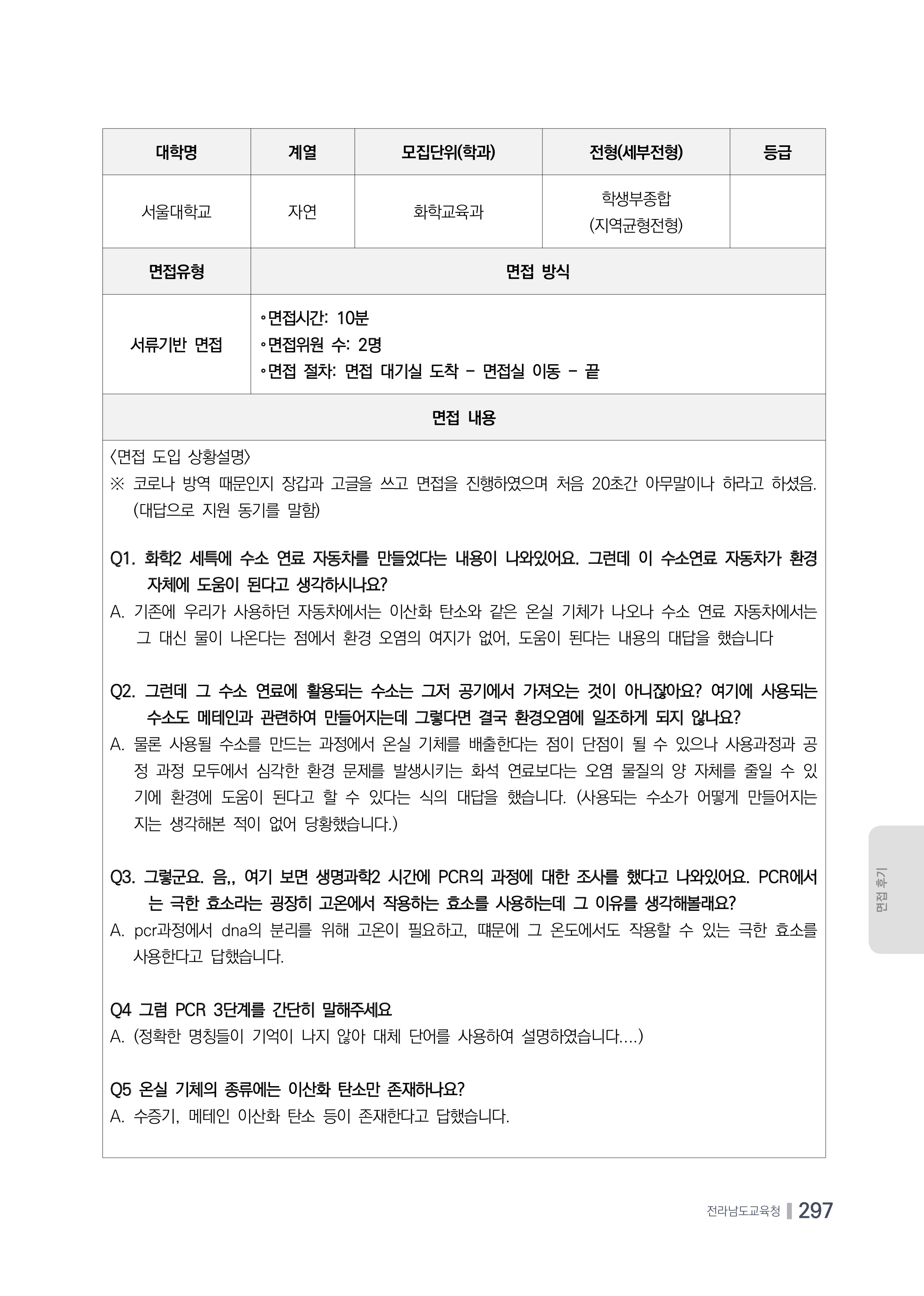 2023학년도 서울대학교 사범대학 면접 후기13 - 화학교육과