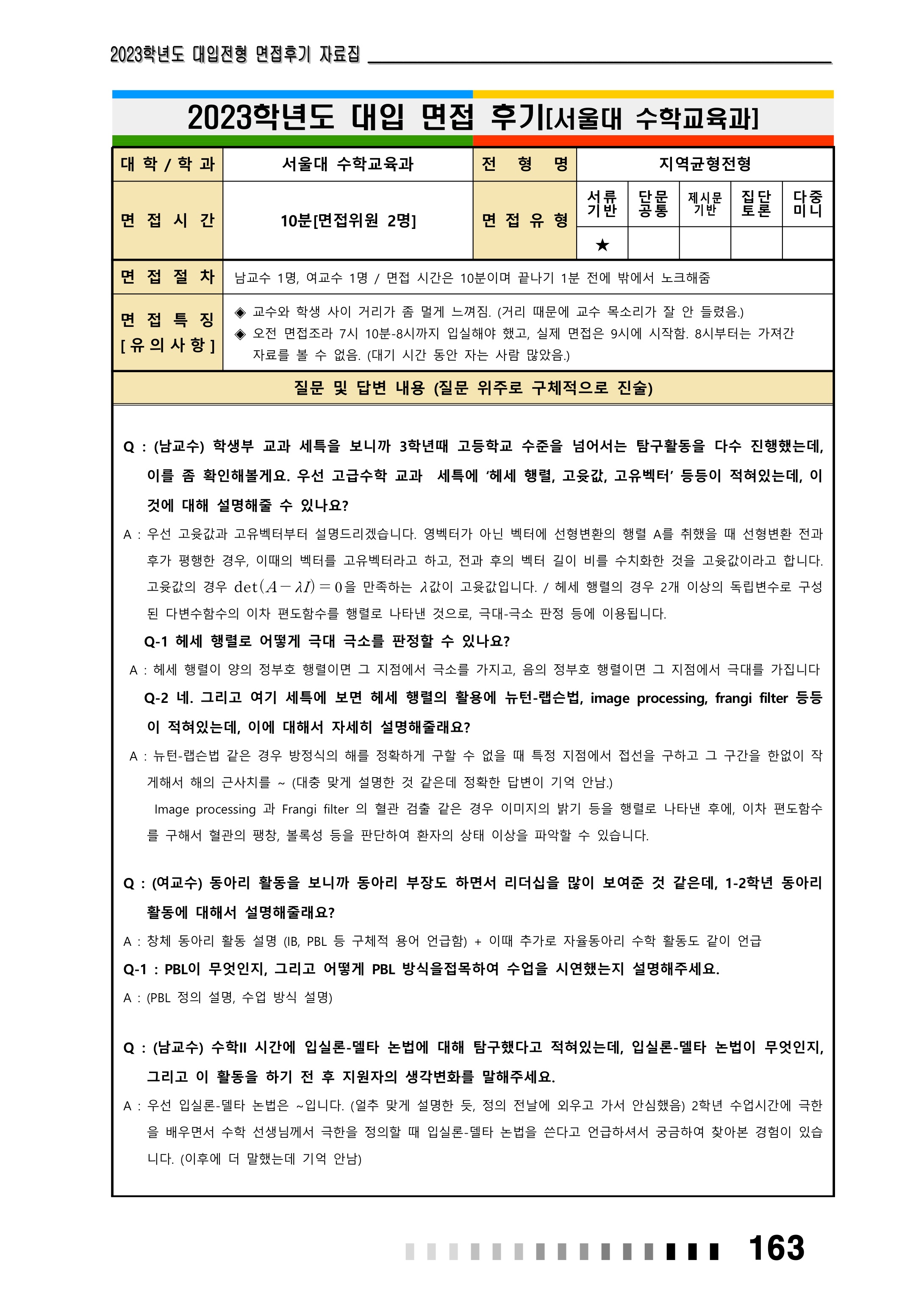 2023학년도 서울대학교 사범대학 면접 후기6 - 수학교육과