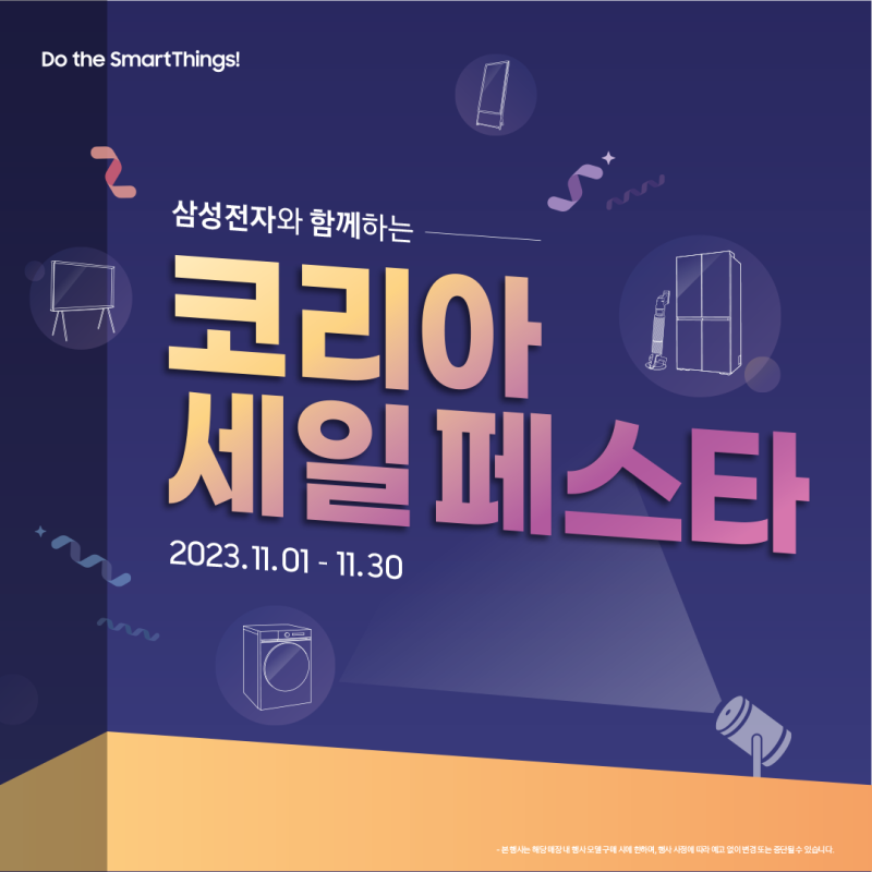 삼성전자와 함께하는 코리아세일페스타가 시작됩니다. 11월 11일부터 ~ 30일까지 진행되는 이번 행사에서는 우리나라 1등 기업 삼성전자도 참가를 했는데요.