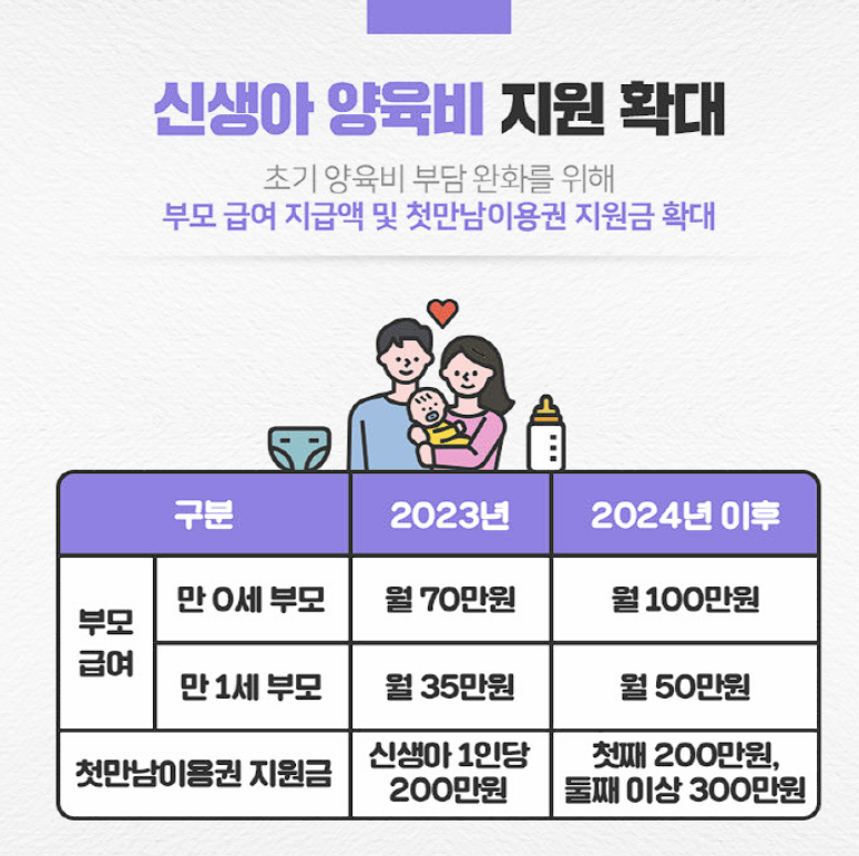 2023년 출생아 부터 적용이 되며 2024년 1월 시행 예정이므로 출산을 준비중이시거나 계획 하시는 분들께서는 반드시 참고해 보시기를 추천드립니다.