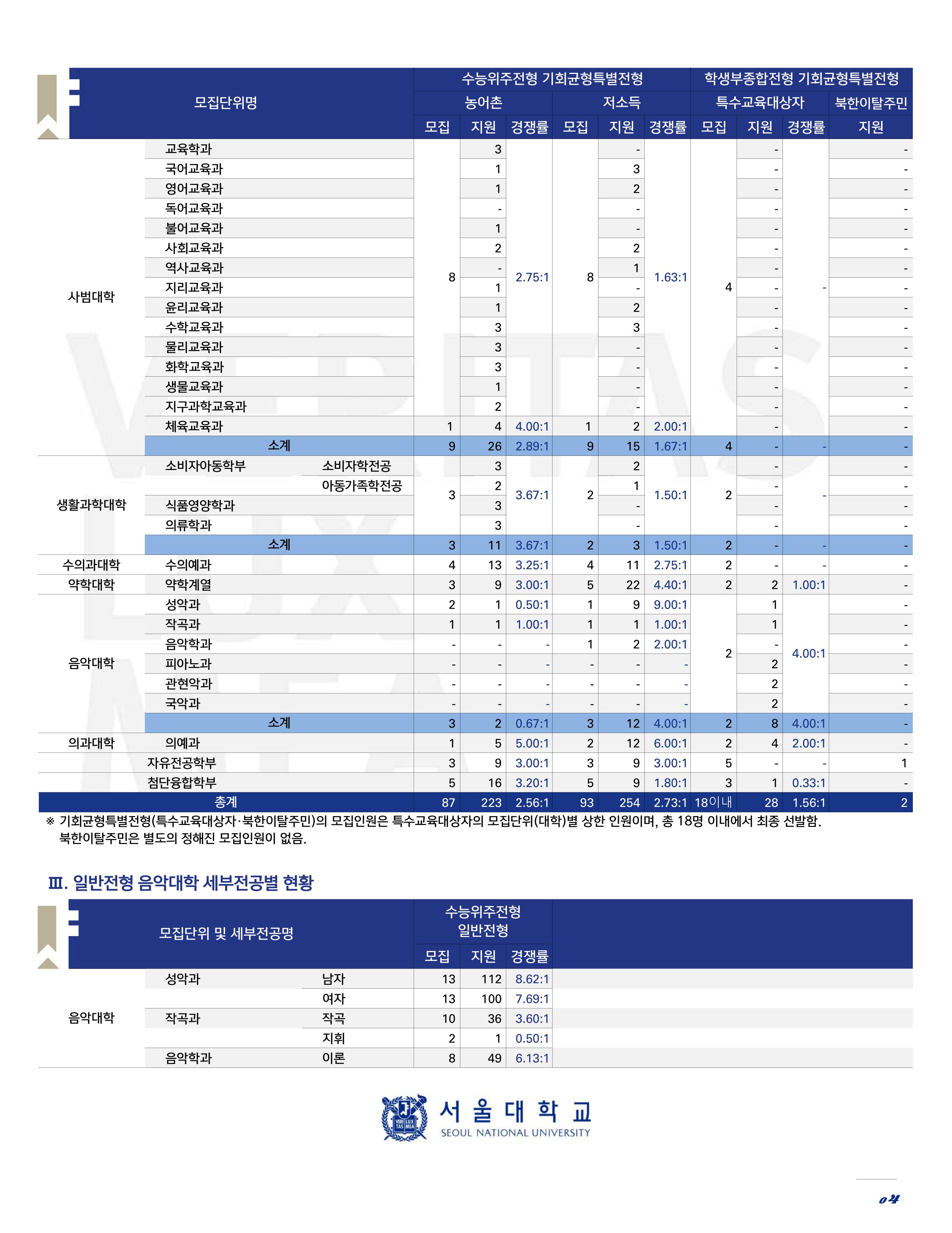 | 성악과 | 26 | 8.38 | 0 | 181.2 | - | 32.5 | |