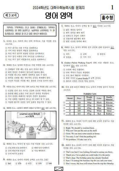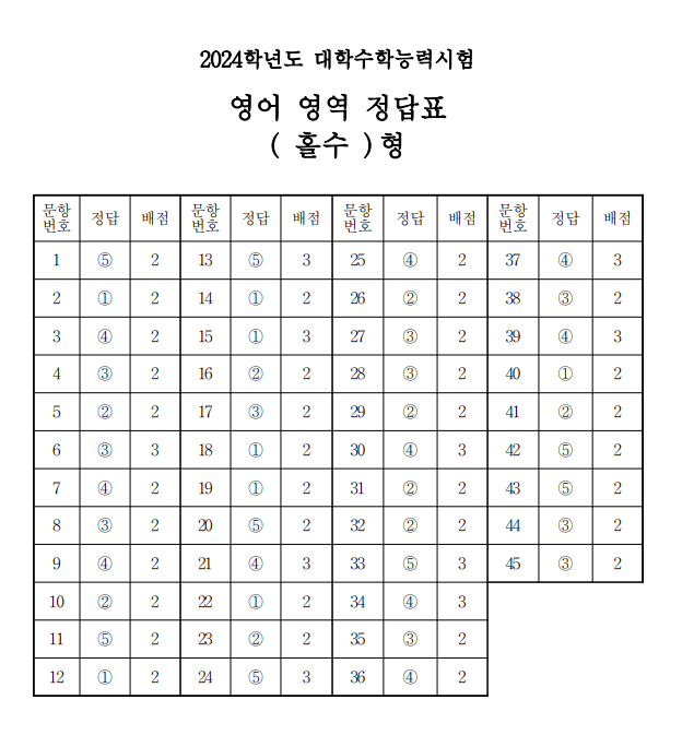 2024 수능 기출 문제 영어 영역 기출문제 정답 다운로드