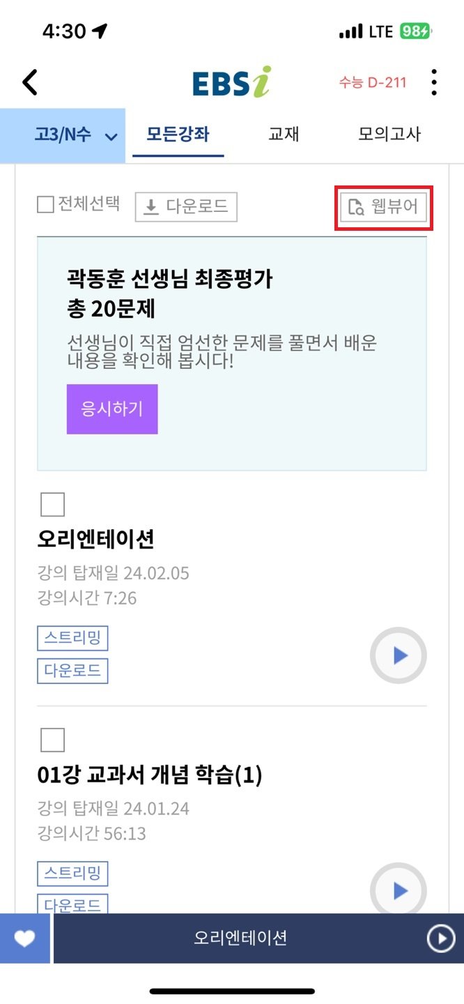 2. 2025 수능특강 pdf 다운로드(모바일 앱 버전)