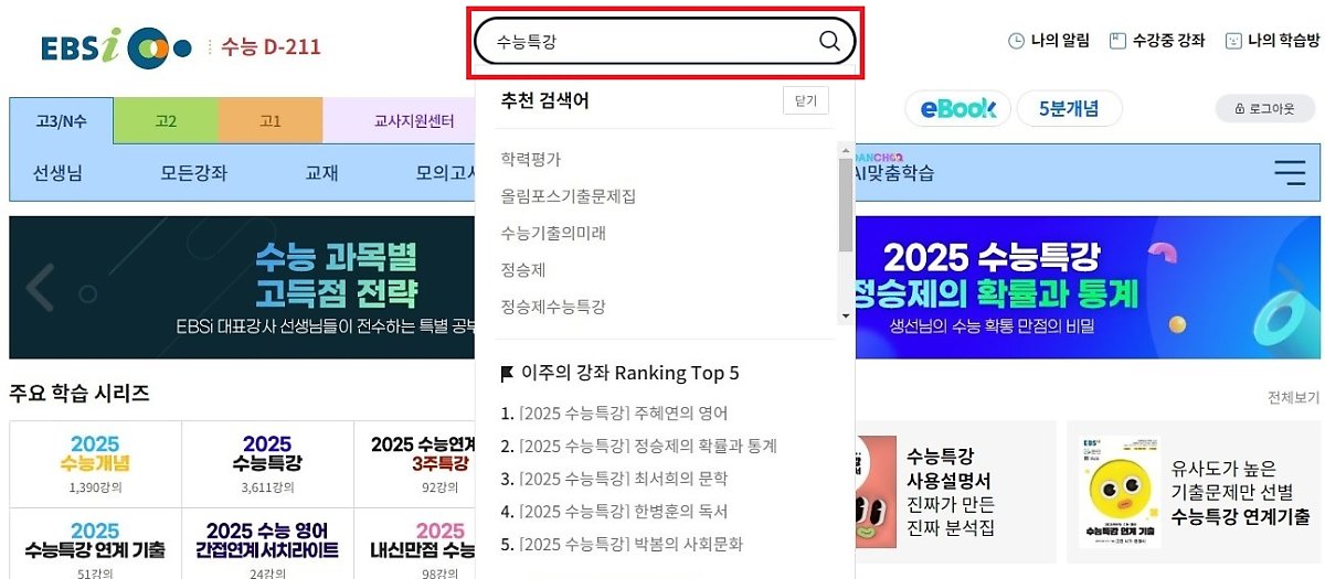 ② '수능특강'을 직접 입력해서 검색해 주세요.