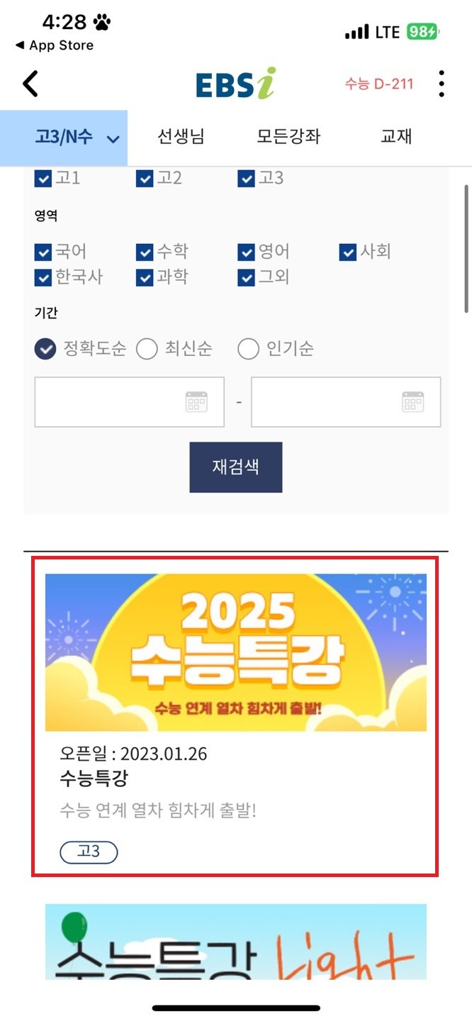 ② '수능특강'을 검색합니다!