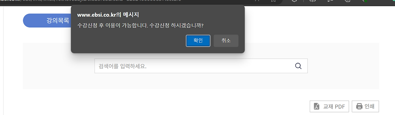 2. '교재 PDF'를 다시 눌러 수강신청을 하시기 바랍니다. '확인' 클릭