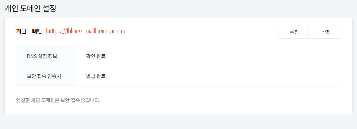 2. 서브도메인 주소를 개인도메인 설정에 입력한다음 변경사항 저장 클릭!!