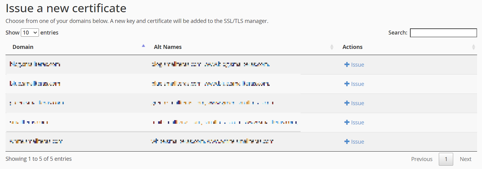 2. Issue a new certificate 에서 해당 도메인 Issue 클릭