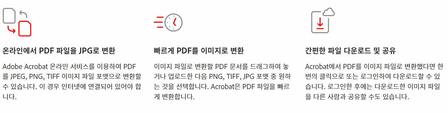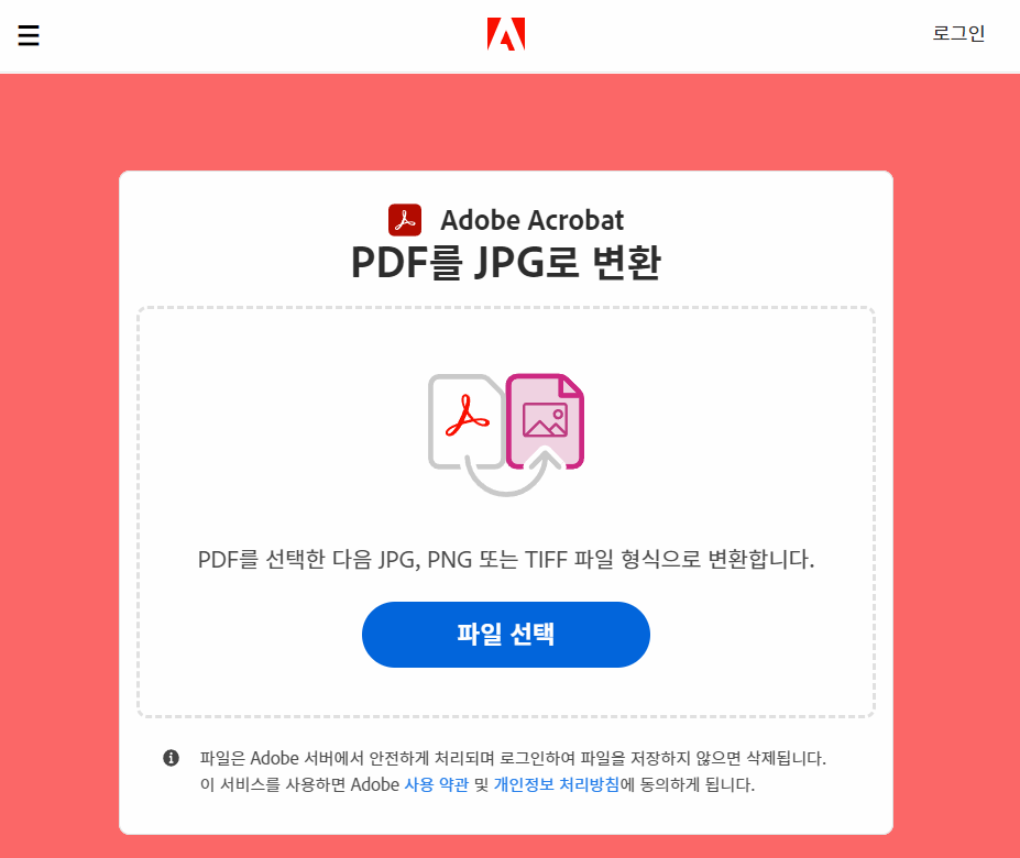 어도비 공식 사이트에서는 PDF를 이미지 파일로 바로 변환할 수 있도록 서비스를 제공하고 있습니다. 공식 사이트이기 때문에 안전하게 서비스를 이용할 수 있어서 더 마음이 놓이는데요.