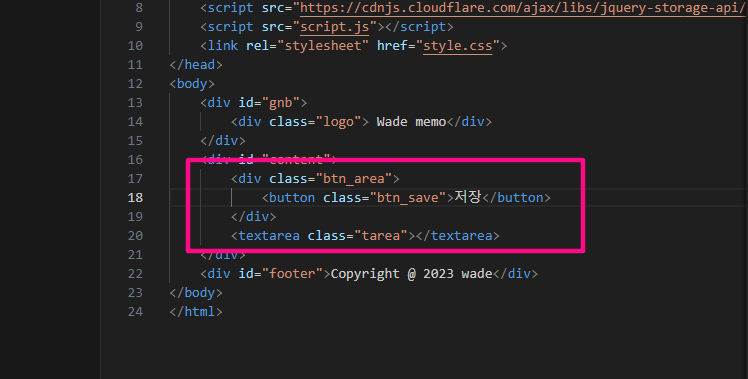 저장 버튼을 만들어 볼텐데요. 버튼은 index.html의 textarea 위에 만들어 보도록 하겠습니다.