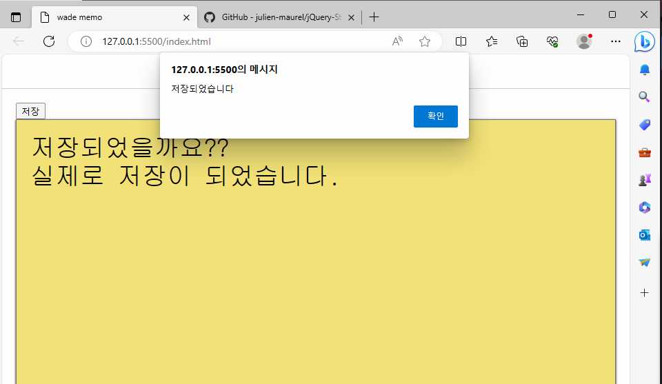 그런데 새로고침을 하면 지워지죠? 이를 해결하기 위해 jquery를 사용합니다.