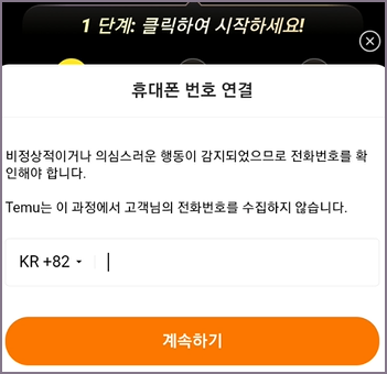 1단계의 핸드폰 인증만으로 가입이 완료되었기 때문에 그 이후에는 테무 모바일 앱의 화면 가이드에 따라 클릭하면서 이용을 시작하시면 됩니다.